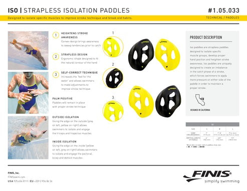 Establish proper technique with the innovative Finis Iso Paddles. The unique design of these training paddles allow for two different ways to train. Get a feel for the right amount of force needed when catching the water. For some swim strokes you may feel the difference along the entire arm. Every stroke leading you to better form and a stronger pull.